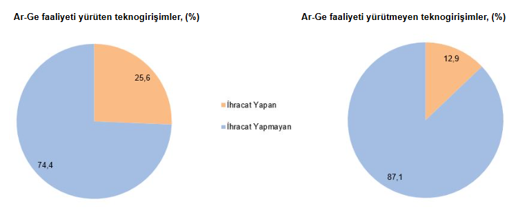 Ar-Ge faaliyeti yürüten teknogirişimlerin %25,6'sı ihracat yaptı