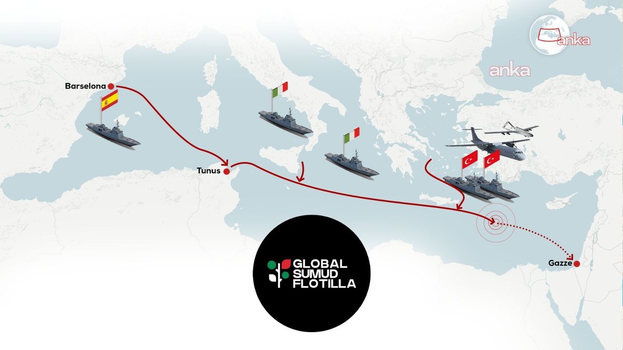 Gazze'ye insani yardım amacıyla Akdeniz'de seyreden Küresel Sumud Filosu'na, İtalya ve İspanya'nın ardından Türk Deniz Kuvvetleri de destek vermeye başladı. Ancak Milli Savunma Bakanlığı ve Dışişleri Bakanlığı tarafından henüz resmi açıklama yapılmadı.