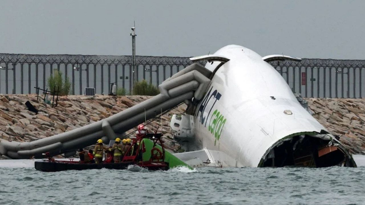 Hong Kong Uluslararası Havalimanı’na inen bir kargo uçağı pistten çıkarak denize uçtu.