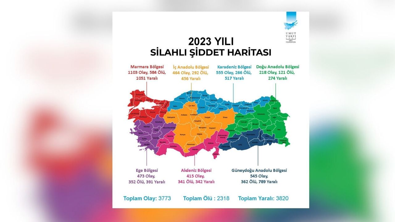 2014 yılından itibaren Umut Vakfı tarafından yayınlanan Türkiye Silahlı Şiddet Haritası raporu açıklandı. 2014 yılından bugüne geçen 10 yılda; toplam 34 bin 197 silahlı şiddet olayı yaşandı. 10 yılda meydana gelen 34 bin 197 silahlı şiddet olayında toplam 21 bin 434 kişi öldü, bazıları ağır 31 bin 207 kişi de yaralandı. 2023 yılında olayların en çok yaşandığı ilk 11 il ise sırasıyla; İstanbul, Samsun, Adana, İzmir, Kocaeli, Sakarya, Bursa, Şanlıurfa, Ankara, Diyarbakır ve Çorum şeklinde oldu.