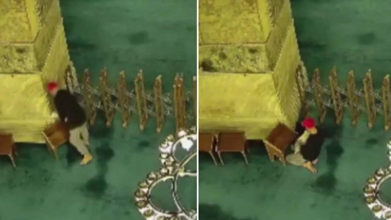 Ayasofya Camii'nde 11 Temmuz'da Cizre nüfusuna kayıtlı, kırmızı şapkalı bir adam yüzünü gizlemeye çalışarak camiye girdi.