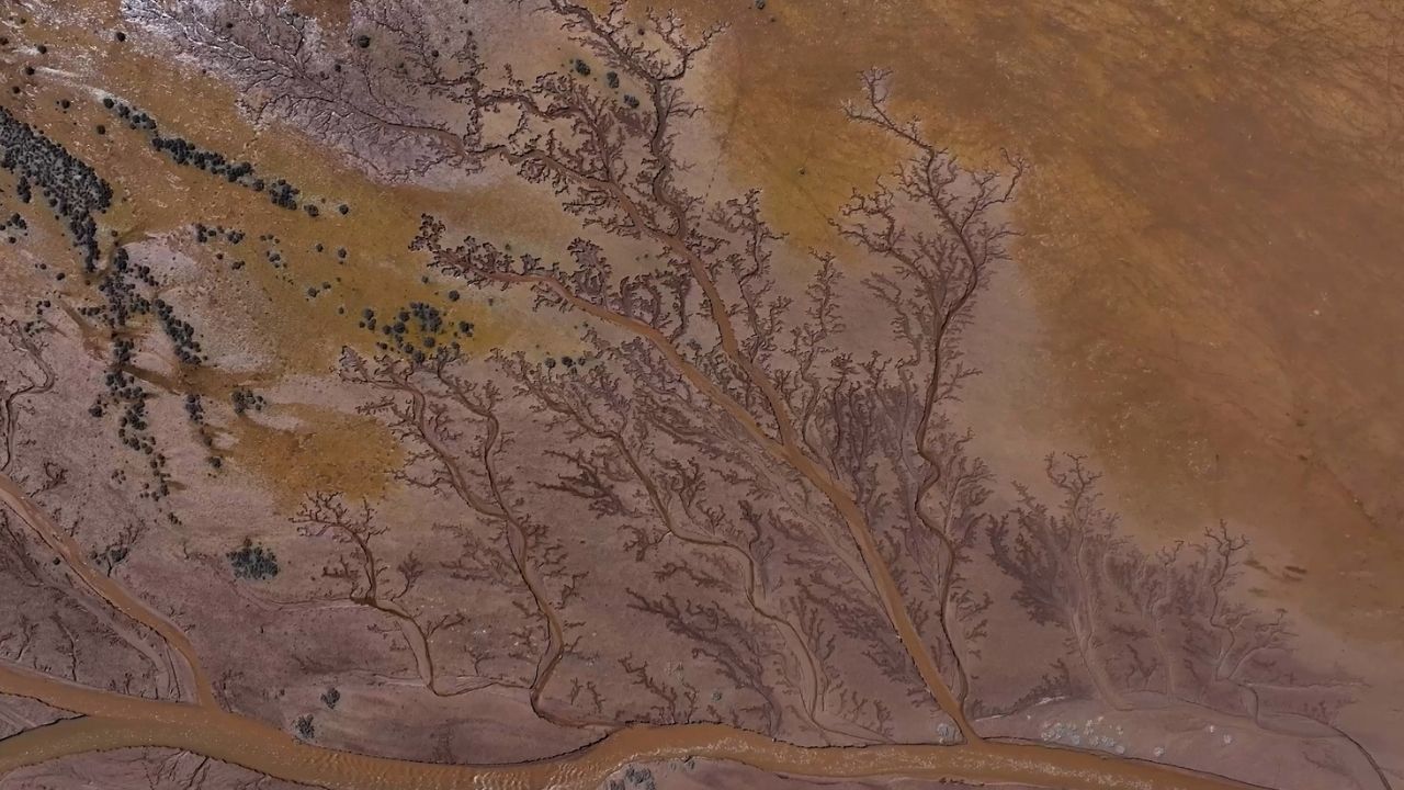 Çevreden akan irili ufaklı suların derelerle birleştiği ve göle döküldüğü alanlarda oluşan izler, dronla çekilen görüntülerde ağaç dallarını andırıyor.