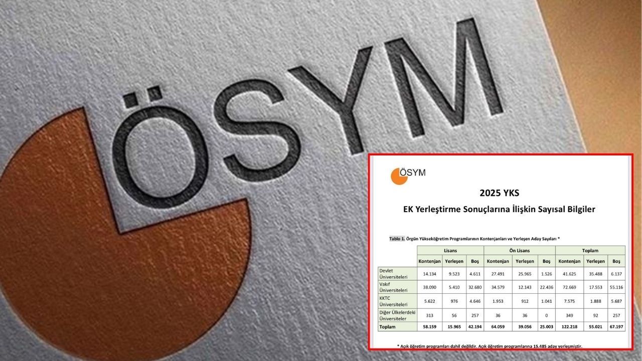 2025-Yükseköğretim Kurumları Sınavı (YKS) ek yerleştirme sonuçları, Ölçme, Seçme ve Yerleştirme Merkezinin (ÖSYM) internet sitesinden açıklandı.