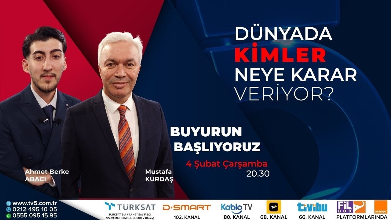 Buyurun Başlıyoruz Buyurun Başlıyoruz - 05.02.2026 🔴 #CANLI | Hangi lobiler daha güçlü, dünyayı kimler yönetiyor? - Buyurun Başlıyoruz 05.02.2026 - 08:32 05.02.2026 - 08:32 Abone Ol Gelişmelerden haberdar olmak istiyor musunuz? Google News’te TV5 sitemize abone olun. Abone Ol