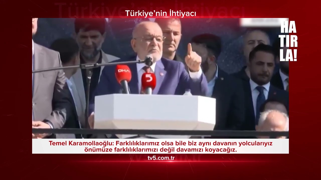 HATIRLA! HATIRLA! 162 Temel Karamollaoğlu: Biz aynı davanın yolcularıyız 25.08.2024 - 10:24 25.08.2024 - 10:24 Abone Ol Gelişmelerden haberdar olmak istiyor musunuz? Google News’te TV5 sitemize abone olun. Abone Ol