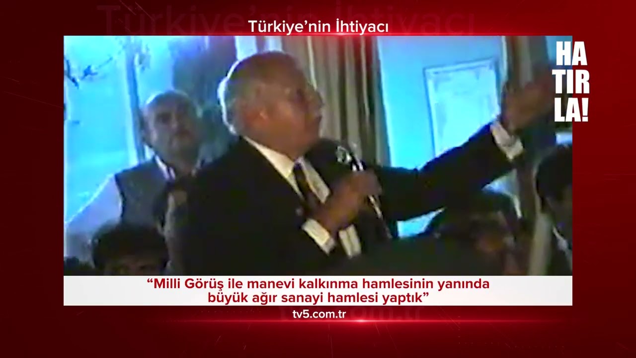 HATIRLA! HATIRLA! 222 “Milli Görüş ile manevi kalkınma hamlesinin yanında büyük ağır sanayi hamlesi yaptık” 30.04.2025 - 13:42 30.04.2025 - 13:42 Abone Ol Gelişmelerden haberdar olmak istiyor musunuz? Google News’te TV5 sitemize abone olun. Abone Ol
