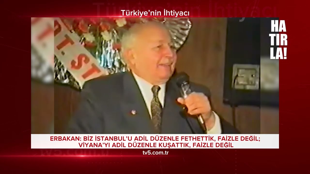 HATIRLA! HATIRLA! 262 Erbakan: Biz İstanbul’u Adil Düzenle fethettik 06.05.2025 - 20:45 06.05.2025 - 20:45 Abone Ol Gelişmelerden haberdar olmak istiyor musunuz? Google News’te TV5 sitemize abone olun. Abone Ol