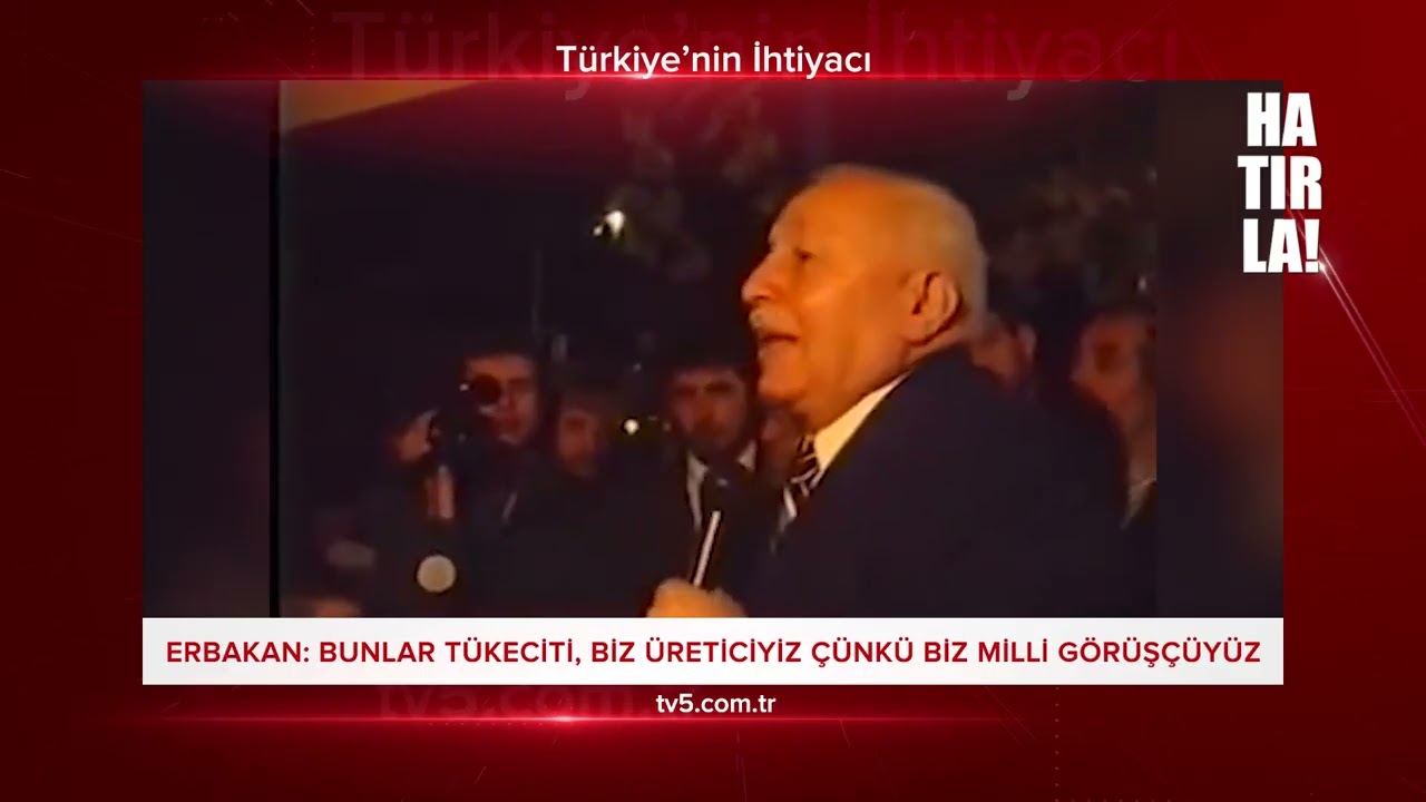 HATIRLA! HATIRLA! 283 - Erbakan: Bunlar tüketici, biz üreticiyiz çünkü biz milli görüşçüyüz 22.05.2025 - 15:09 22.05.2025 - 15:09 Abone Ol Gelişmelerden haberdar olmak istiyor musunuz? Google News’te TV5 sitemize abone olun. Abone Ol