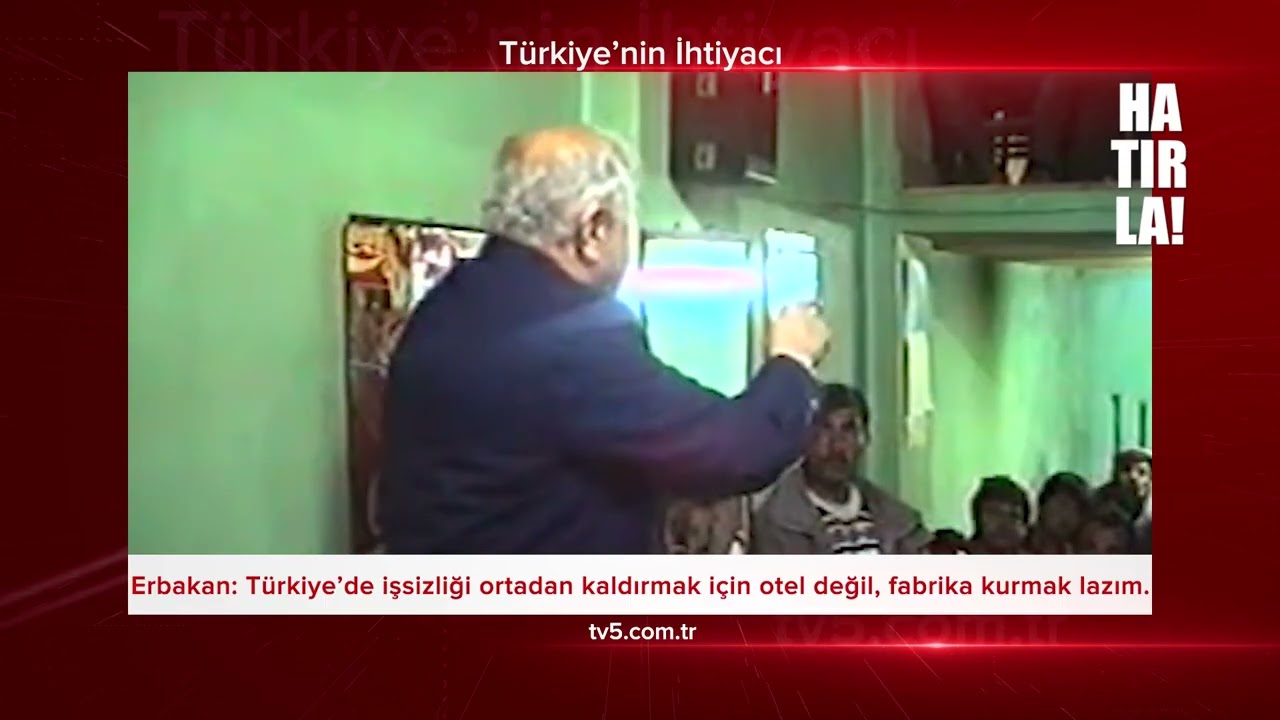 HATIRLA! HATIRLA! 301 Erbakan: Türkiye’de işsizliği ortadan kaldırmak için otel değil, fabrika kurmak lazım 29.05.2025 - 13:43 29.05.2025 - 13:43 Abone Ol Gelişmelerden haberdar olmak istiyor musunuz? Google News’te TV5 sitemize abone olun. Abone Ol
