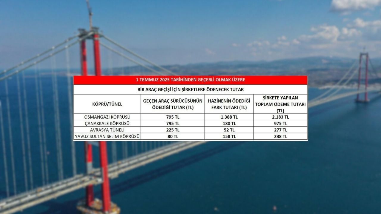 Yavuzyılmaz’ın paylaştığı verilere göre, Osmangazi Köprüsü’nden geçen bir araç için sürücünün ödediği geçiş ücreti 795 TL olarak kalacak. Ancak Hazine, araç başına 1.388 TL fark ödeyerek şirketin aldığı toplam geçiş ücretini 2.183 TL’ye tamamlayacak.