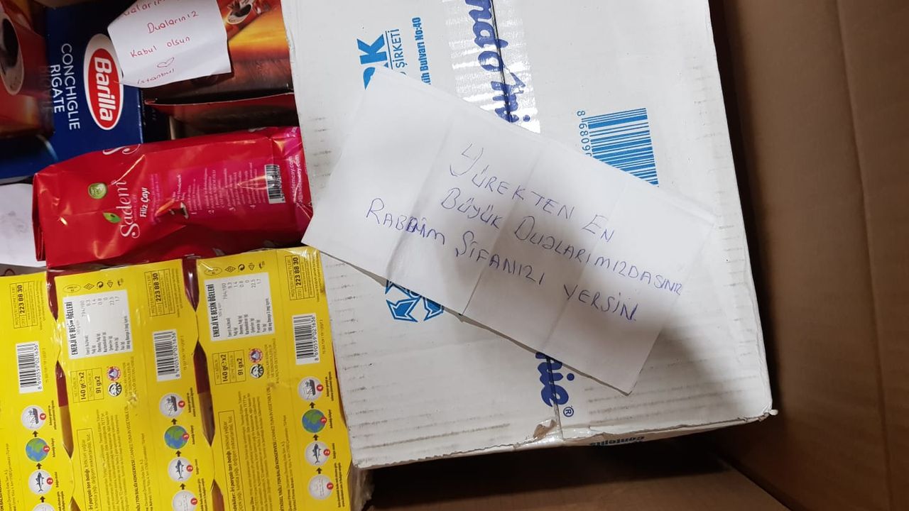Yardım kolilerinin içinden minik ellerin kendi el yazısıyla yazdığı, vatandaşların kaleme aldığı notlar ise yardımsever gönüllülere duygusal anlar yaşattı.
