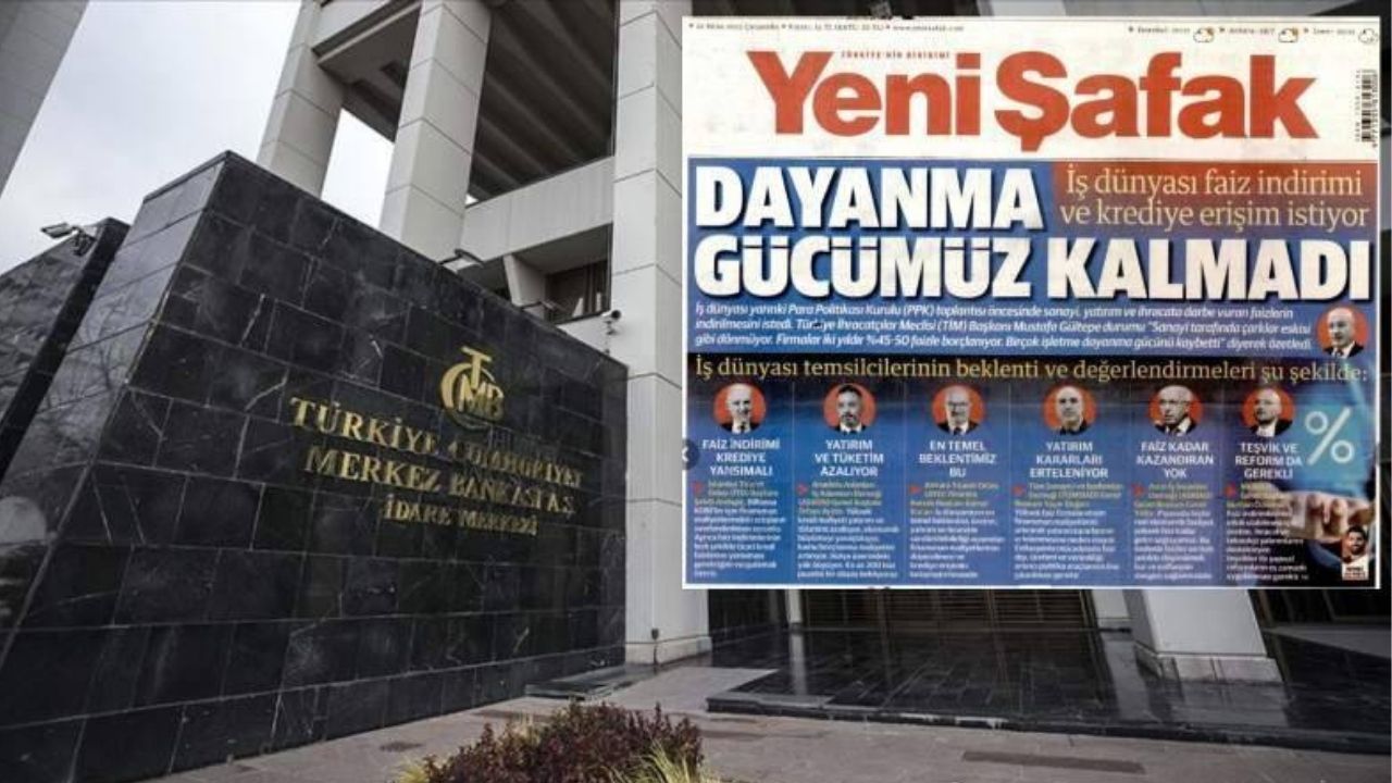 Yeni Şafak Gazetesi, "Dayanma gücümüz kalmadı: İş dünyası faiz indirimi ve krediye erişim istiyor" başlıklı haberinde, İş dünyası yarınki Para Politikası Kurulu (PPK) toplantısı öncesinde sanayi, yatırım ve ihracata darbe vuran faizlerin indirilmesini istedi. Türkiye İhracatçılar Meclisi (TİM) Başkanı Mustafa Gültepe durumu 'Sanayi tarafında çarklar eskisi gibi dönmüyor. Firmalar iki yıldır %45-50 faizle borçlanıyor. Birçok işletme dayanma gücünü kaybetti' diyerek özetledi" ifadelerini kullandı.